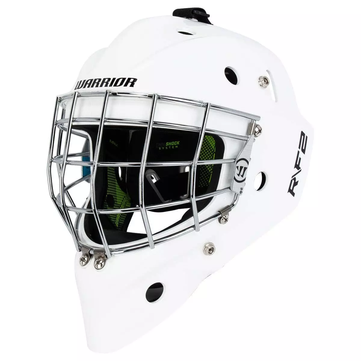 Inside the R/F2 E is where the mask really begins to shine. Warrior utilizes their OmniShock System, a wholistic approach to head protection that is focused on safety. All shell and liner components are integrated, by design to eliminate negative space, while a combination of dual density Impax foams offer the optimal balance of weight reduction, comfort and protection.